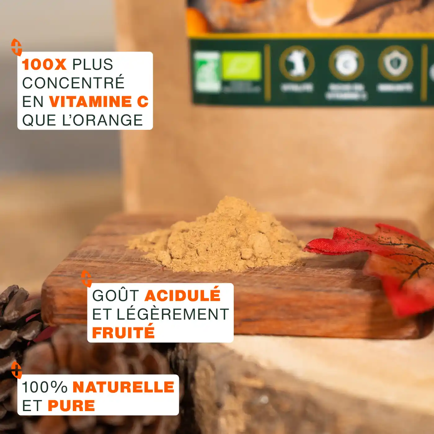Votre nouvel allié pour soutenir votre immunité et faire le plein de vitalité : découvrez le Camu-Camu Bio ! Ce fruit originaire des régions amazoniennes est très réputé pour sa teneur exceptionnellement élevée en vitamine C naturelle. Cette richesse dépasse d’ailleurs celle de la plupart des autres fruits, et offre au Camu-Camu des vertus énergisantes et antioxydantes. La vitamine C est également appréciée pour conserver une bonne immunité et pour stimuler la production de collagène, une molécule essentielle pour nos os, nos articulations, nos tendons ou encore notre peau.