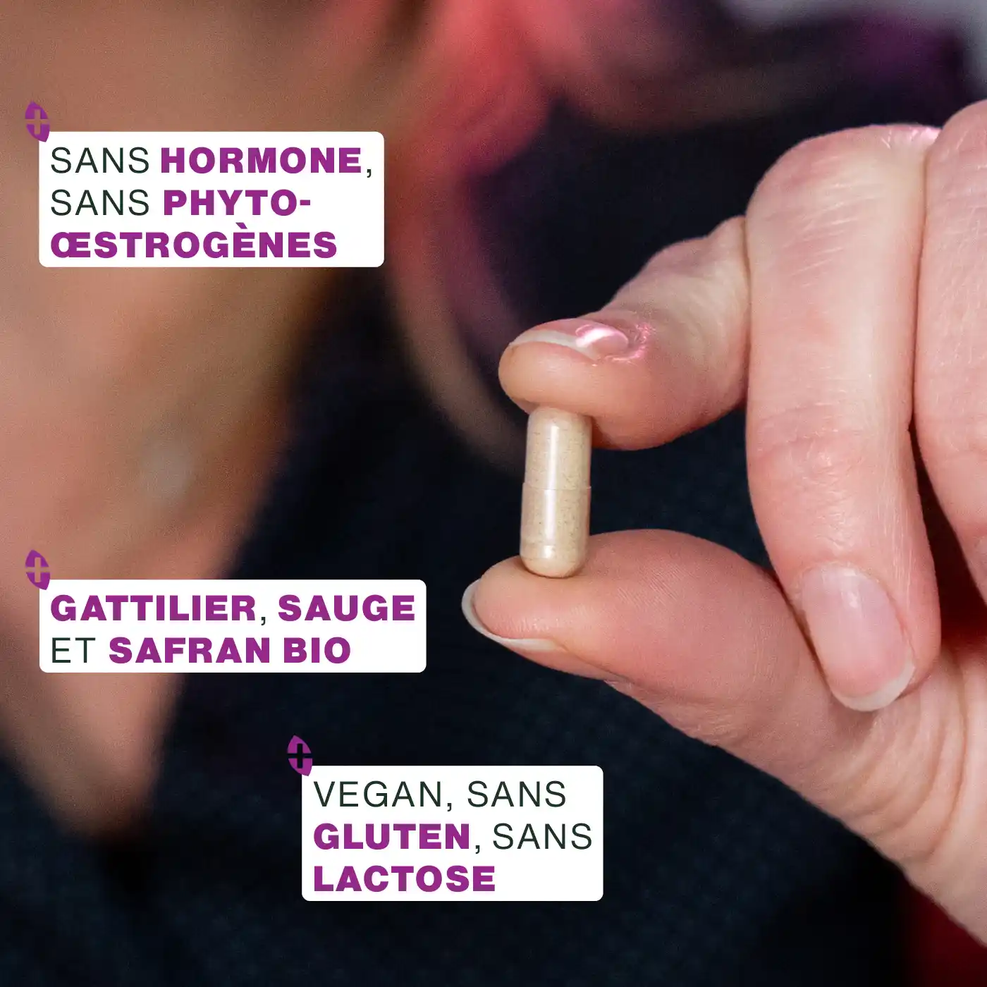 - CERTIFIÉ BIOLOGIQUE : boîte refermable recyclable de 60 gélules de 270mg contenant un extrait de feuilles de Sauge Biologique de Qualité Supérieure, un extrait de stigmates de Safran Biologique de Qualité Supérieure et un extrait de fruits de Gattilier Biologique de Qualité Supérieure. Produit 100% pur, vegan, sans additif, sans conservateur, sans OGM, sans pesticides, sans colorant artificiel, sans gluten et sans lactose. Chaque lot est testé par des tiers afin de s’assurer de leur qualité et leur pureté. Plantes extraites, analysées, fabriquées et conditionnées en France.