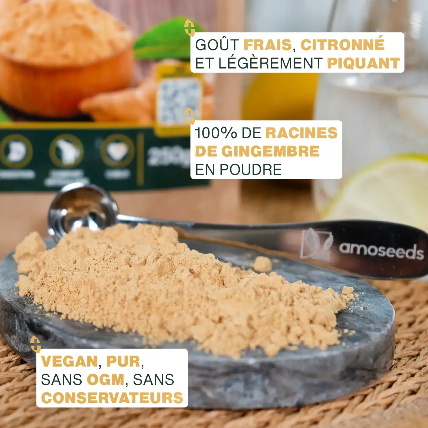 Vous voulez apporter des saveurs originales à vos préparations ? Vous allez adorer les notes citronnées et légèrement piquantes de notre Gingembre en poudre Bio. Grâce à un séchage à basse température, il conserve tous ses arômes, mais aussi ses bienfaits sur la digestion et le confort articulaire :
