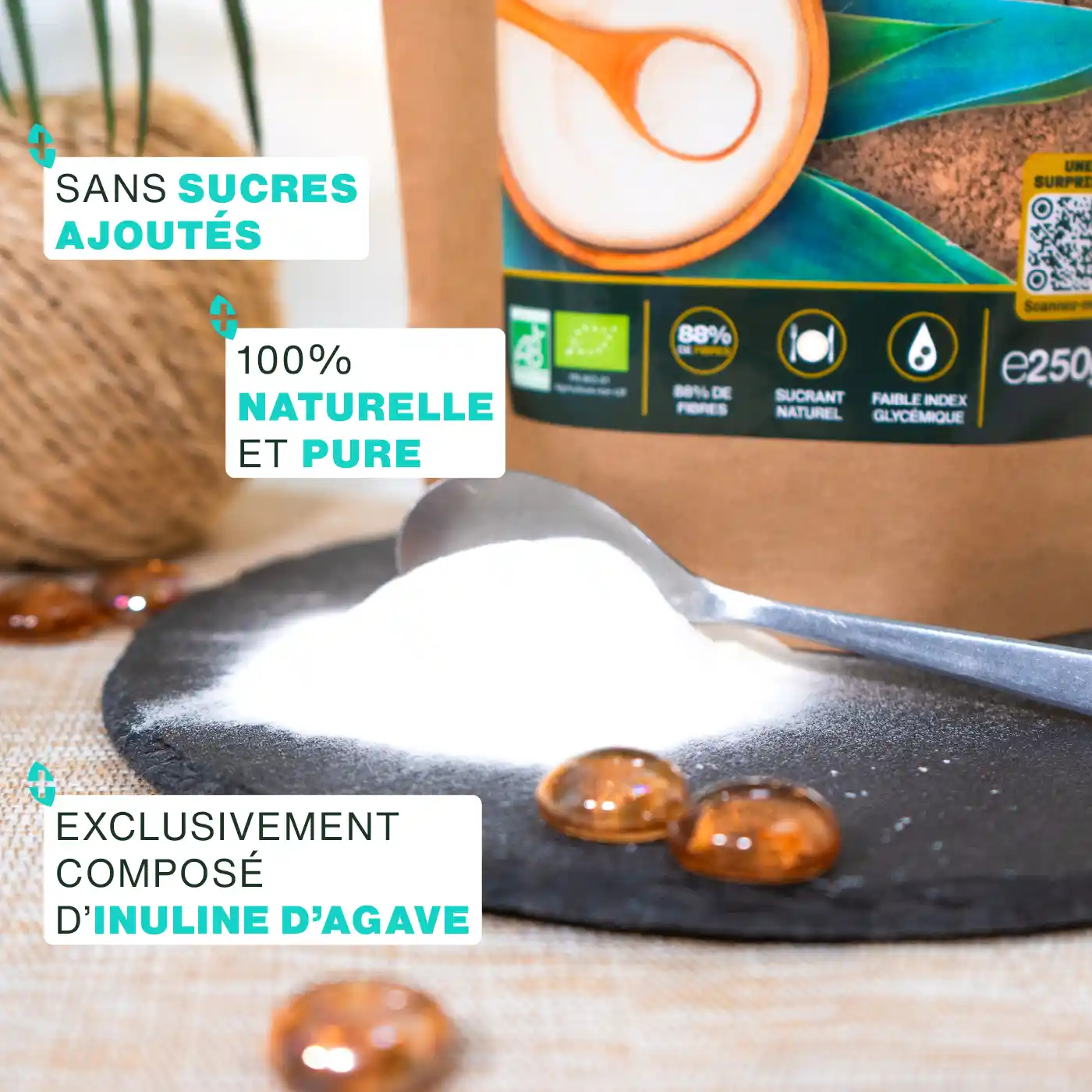 - CERTIFIÉE BIOLOGIQUE : sachet Kraft refermable et recyclable de 250g d’Inuline d’Agave Bleu Bio de qualité supérieure. Produit 100% naturel, pur, vegan, sans additif, sans conservateur, sans OGM, sans pesticides, sans colorant artificiel, sans lactose, sans soja et sans gluten. Chaque lot est testé par des tiers afin de s’assurer de leur qualité et leur pureté.