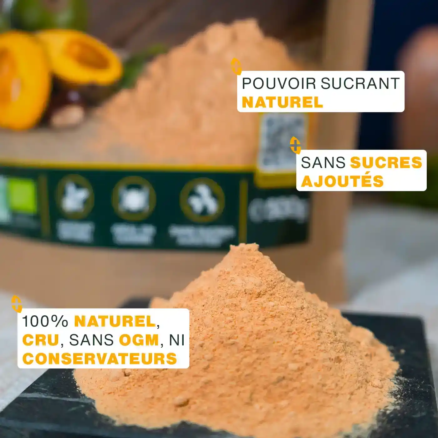 Notre Lucuma en poudre Bio est une excellente alternative au sucre raffiné. Issu d'un petit fruit exotique des Andes, il est très apprécié pour ses qualités gustatives. Grâce à son goût doux et ses notes rappelant le sirop d’érable, la patate douce ou encore le caramel, il remplacera le sucre dans toutes vos préparations. Ses avantages :